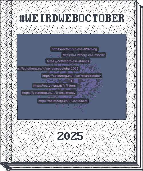 That GIF at the top of the page doesn't just represent a search for all the sites posted for Weird Web October 2025, it contains it. You can text or email or DM that GIF to someone, and, as long as it is not corrupted, they can drop it onto https://octothorp.es/explore and see the collection.